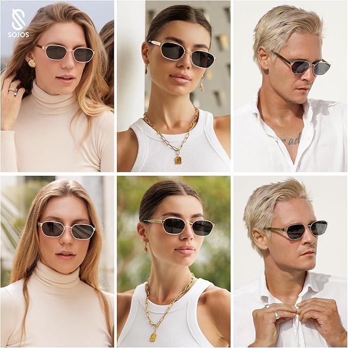 SOJOS Trendy Polarized Hexagon Sunglasses for Women Men, UV400 Retro Rectangle Shades SJ1238