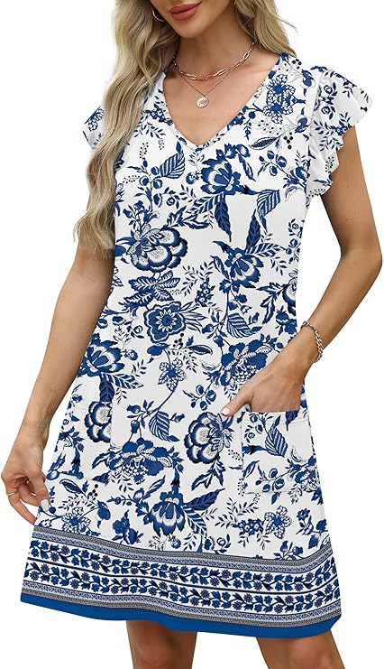 - FEATURES:It features casual style,cute v neck,ruffle sleeve and short length.Two pockets can provide extra storage for carrying small items.